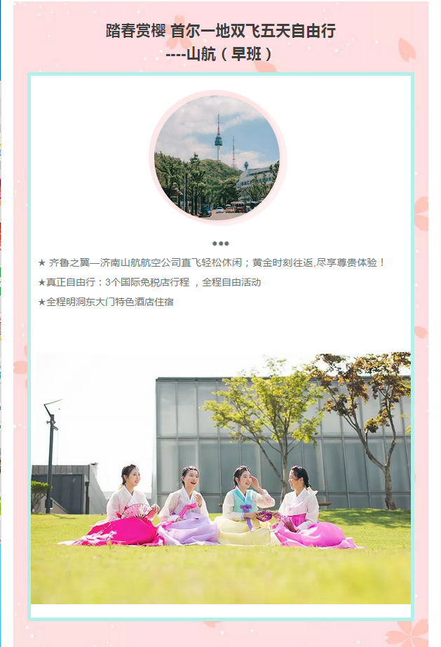 踏春賞櫻 首爾雙飛五真自由-山航(早班)