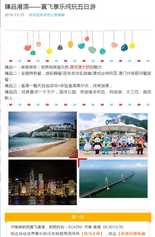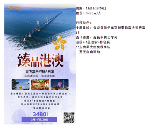 臻品港澳——直飛享樂純玩五日游 2019-3-7 本文被閱讀 1988 次