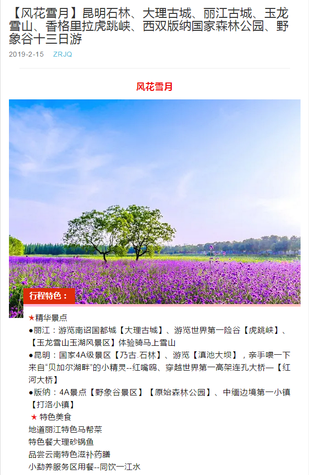 【風(fēng)花雪月】昆明石林、大理古城、麗江古城、玉龍雪山、香格里拉虎跳峽、西雙版納國家森林公園、野象谷十三日游 2019-3-9 本文被閱讀 2229 次