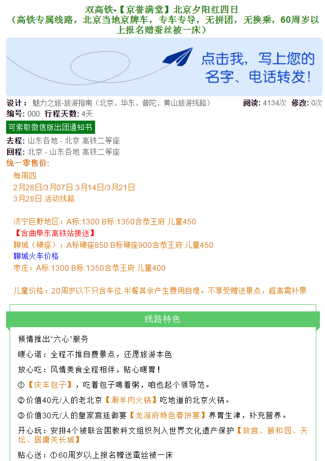 雙高鐵-【京譽滿堂】北京夕陽紅四日 ;