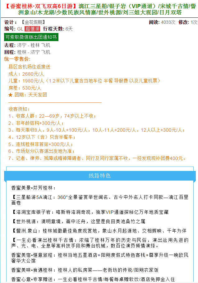 香蜜桂林·雙飛雙高6日游】漓江三星船/銀子巖(VIP通道)/宋城千古情/訾洲象山/木龍湖/少數(shù)民族風(fēng)情寨/世外桃源/劉三姐大觀園/日月雙塔 2019-3-15 本文被閱讀 2230 次