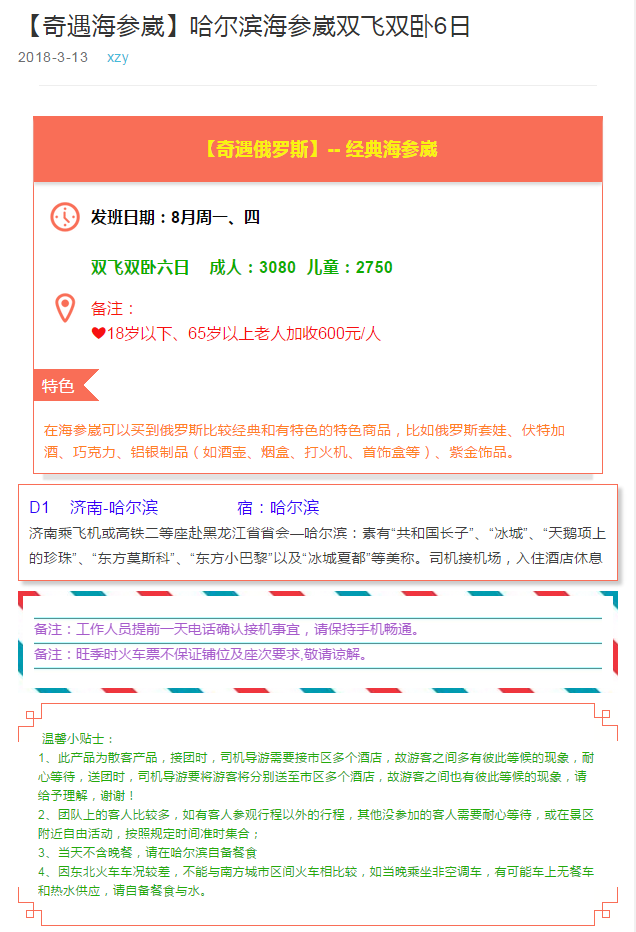 【奇遇海參崴】哈爾濱海參崴雙飛雙臥6日 2019-3-18 本文被閱讀 1775 次