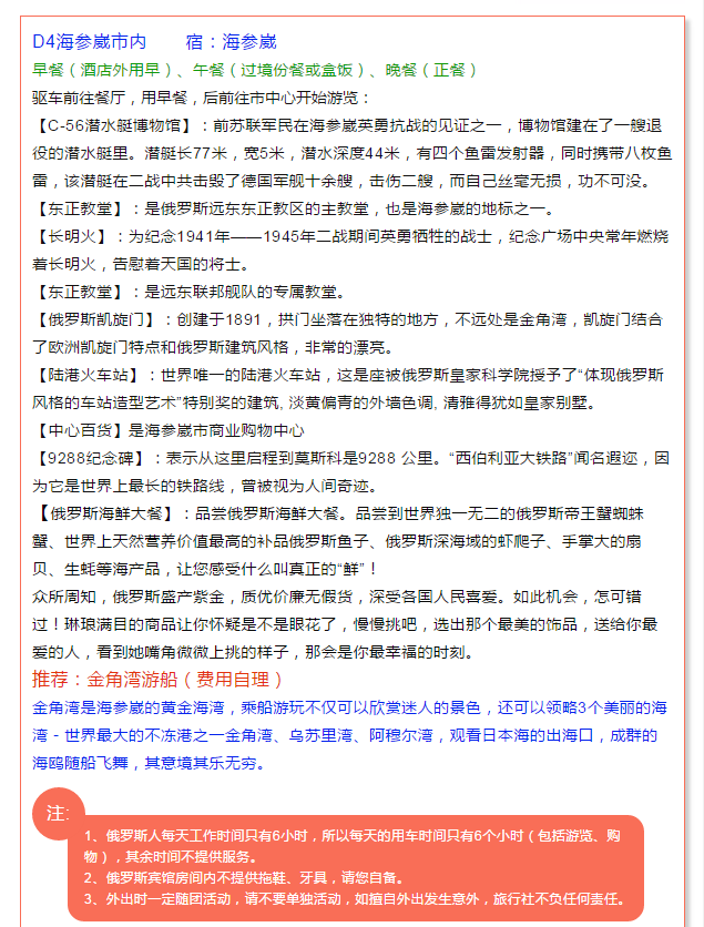【奇遇海參崴】哈爾濱海參崴雙飛雙臥6日
