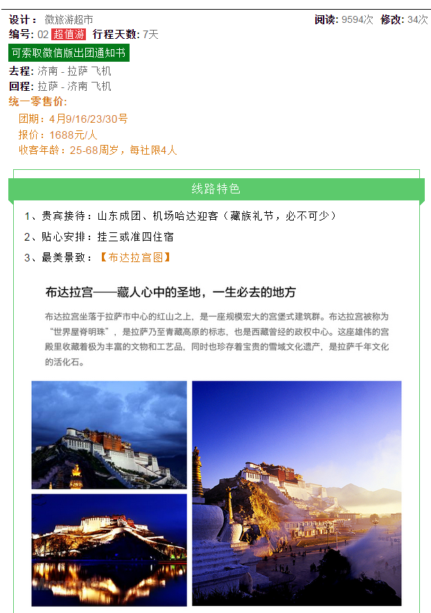【打卡西藏】濟(jì)南拉薩雙飛7日游 2019-3-25 本文被閱讀 1912 次