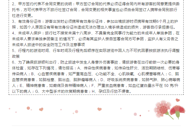 提示:報名選擇正規(guī)旅游合法資質的旅行社,并簽訂全國統(tǒng)一電子旅游合同