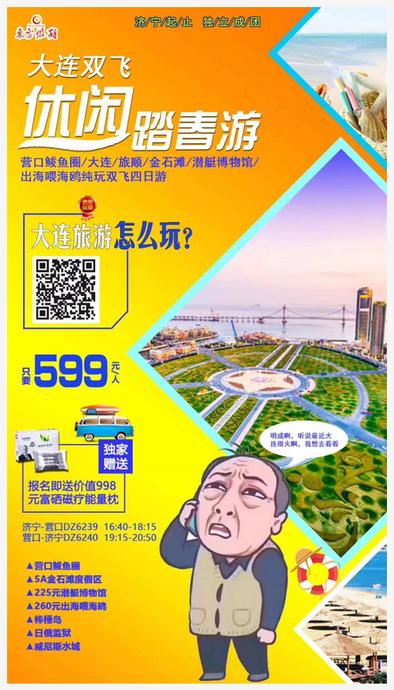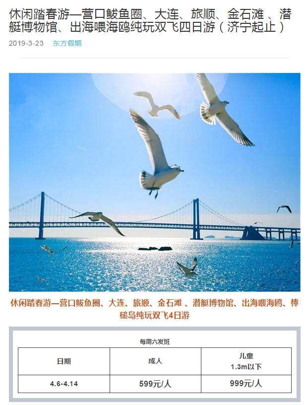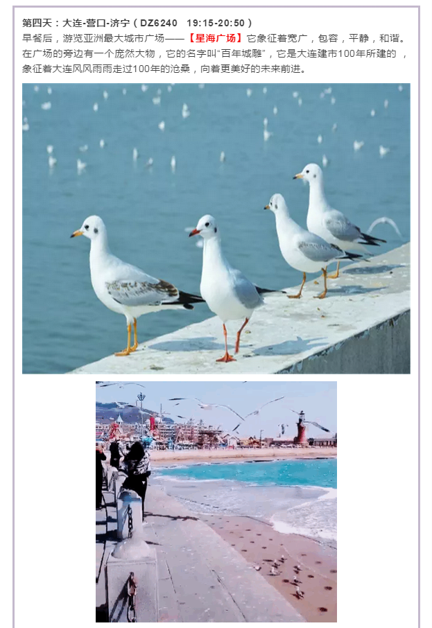 休閑踏春游—營口鲅魚圈、大連、旅順、金石灘 、潛艇博物館、出海喂海鷗純玩雙飛四日游(濟寧起止) 2019-3-30 本文被閱讀 3735 次