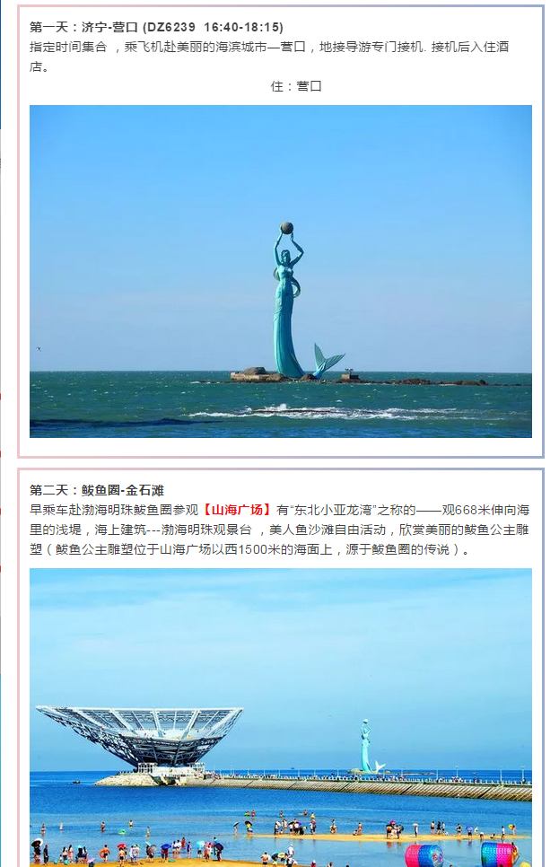 休閑踏春游—營口鲅魚圈、大連、旅順、金石灘 、潛艇博物館、出海喂海鷗純玩雙飛四日游(濟寧起止)