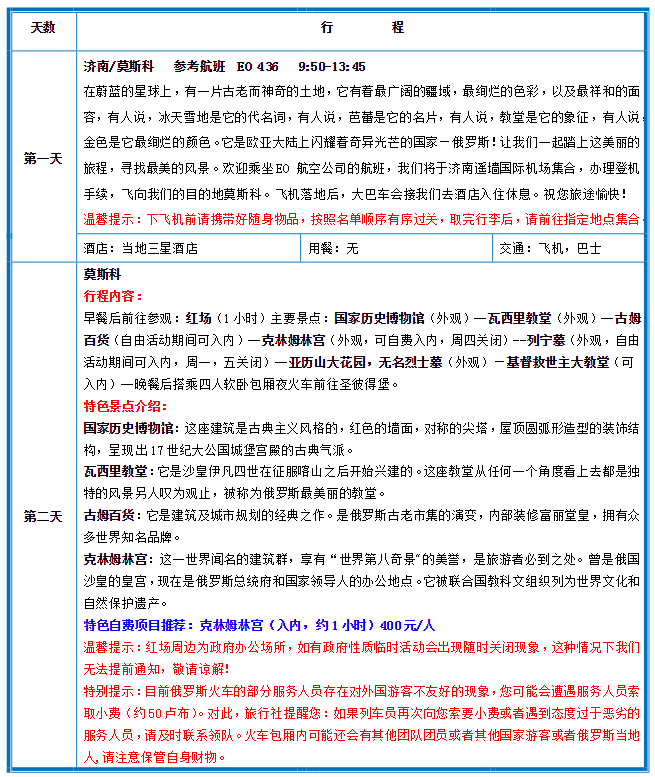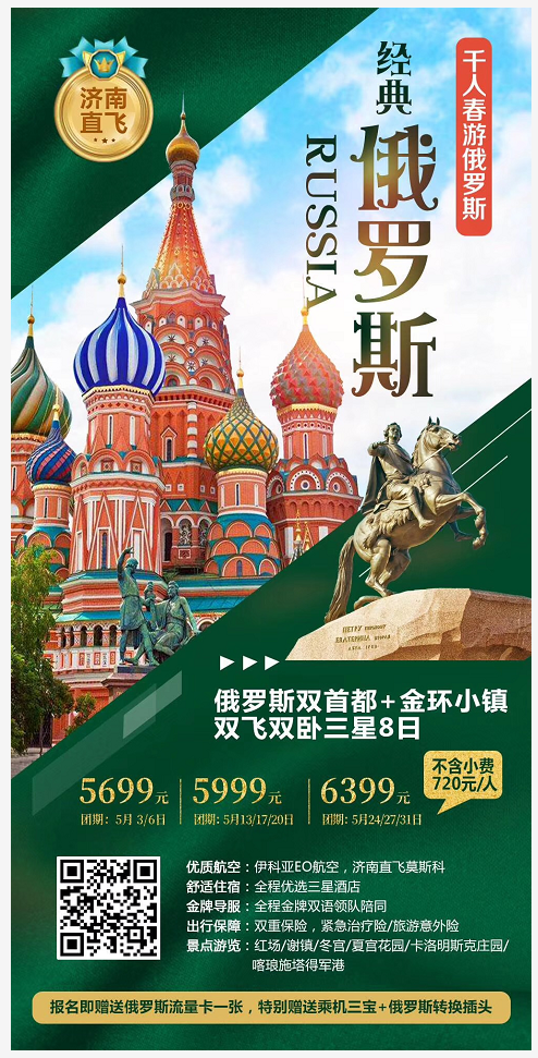 俄羅斯包機(jī)-雙首都雙飛雙臥8日游 2019-3-31 本文被閱讀 1996 次