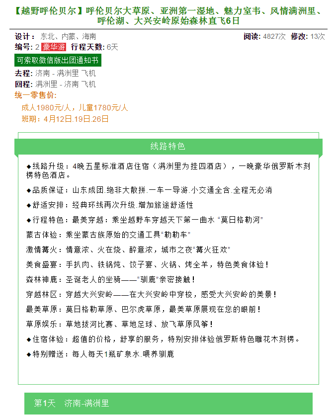 天天更新線路  特色旅游