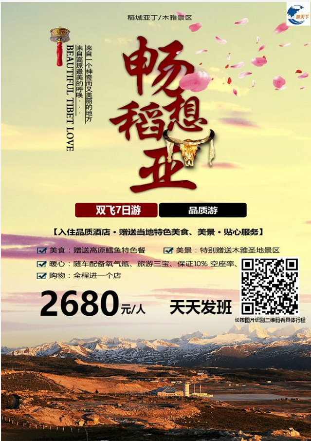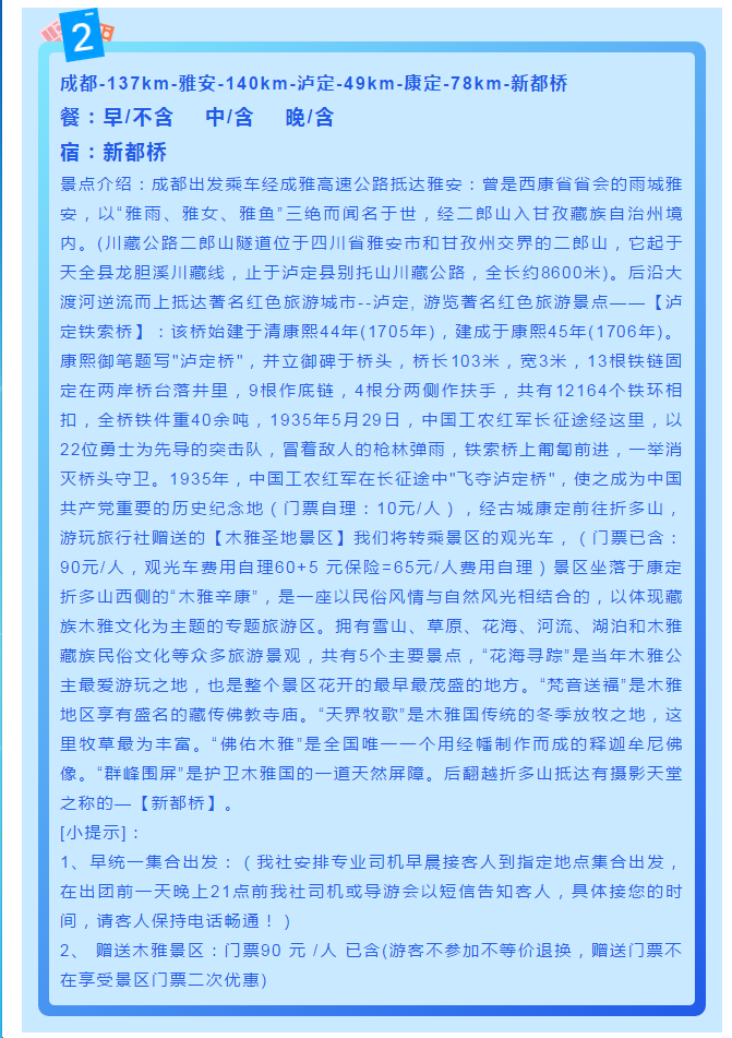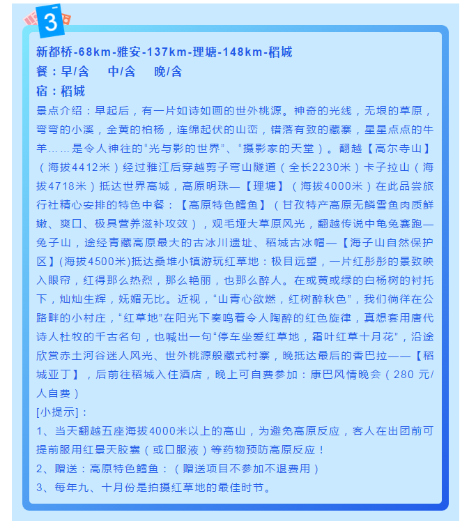 特價--[暢享稻亞] 成都-雅安-瀘定-康定-新都橋-理塘-稻城亞丁-諾絨牛場雙飛7天 2019-4-22 本文被閱讀 1906 次