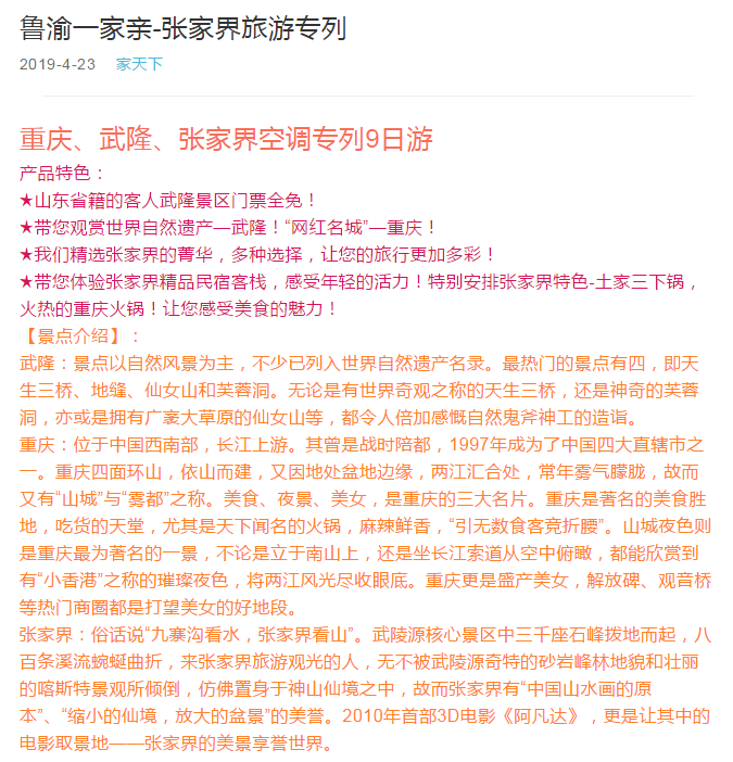 重慶、武隆、張家界空調(diào)專列9日游 2019-4-25 本文被閱讀 1914 次