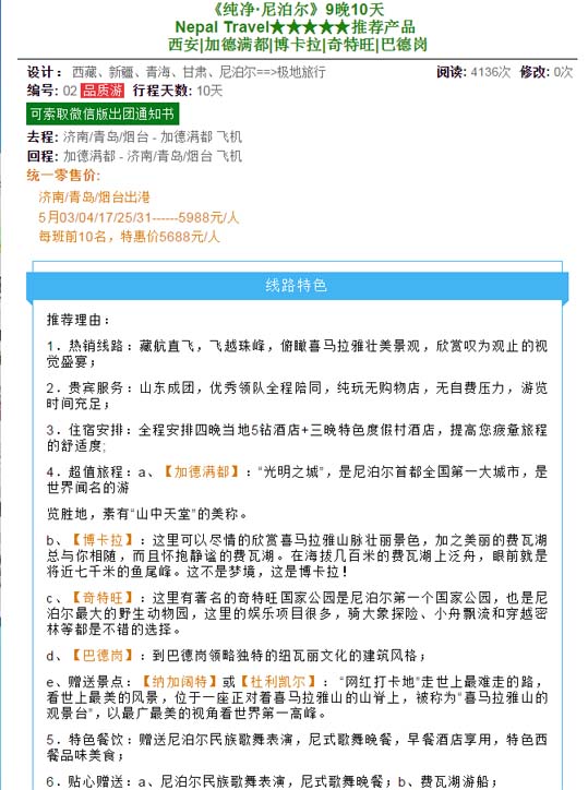 《純凈·尼泊爾》9晚10天 西安|加德滿都|博卡拉|奇特旺|巴德崗 2019-4-26 本文被閱讀 1962 次