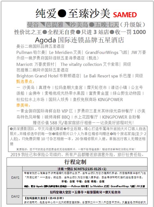 曼谷Ø;芭提雅Ø;沙美島Ø;享時(shí)光●五晚七天 2019-4-28 本文被閱讀 1930 次