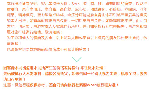 提示:報(bào)名選擇正規(guī)旅游合法資質(zhì)的旅行社,并簽訂全國(guó)統(tǒng)一電子旅游合同