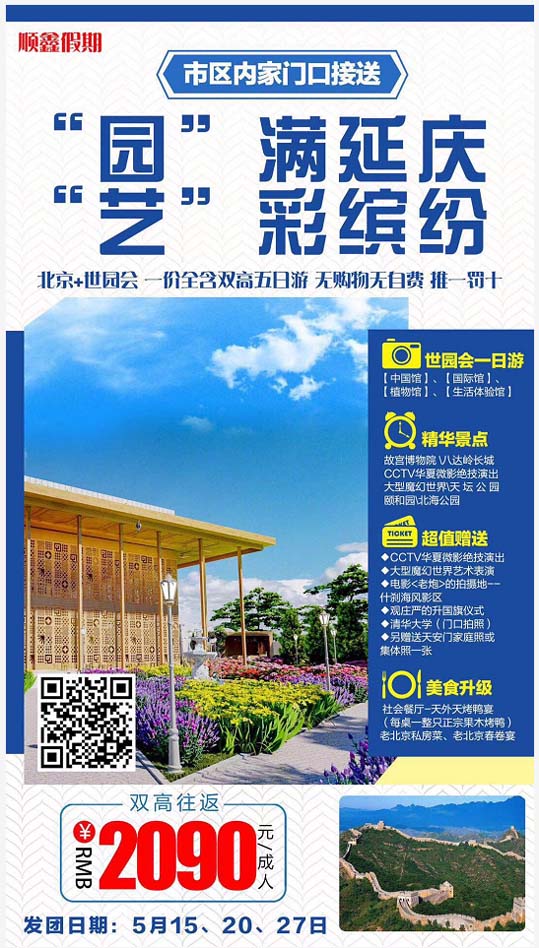 【“園”滿延慶 “藝”彩繽紛】北京+世園會 一價全含雙高五日游 無購物無自費 推一罰十 2019-5-6 本文被閱讀 2030 次