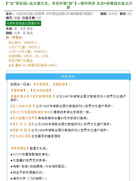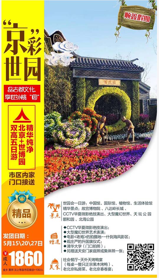 【“京”彩世園--品古都文化,享世外桃“園”】--精華純凈 北京+世博園雙高五日游 2019-5-6 本文被閱讀 2049 次