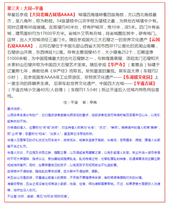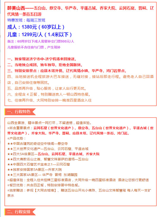 醉美山西——五臺山、懸空寺、華嚴寺、平遙古城、喬家大院、云岡石窟、晉祠、遼代風情一條街五日游