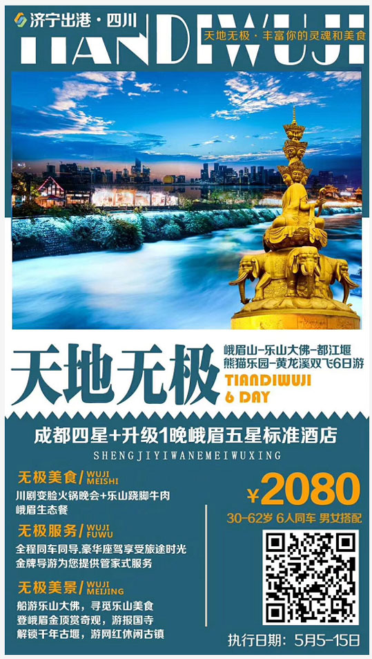 【天地無極】-峨眉金頂-報國寺-象城-樂山大佛-黃龍溪古鎮(zhèn)-都江堰-無極六日游