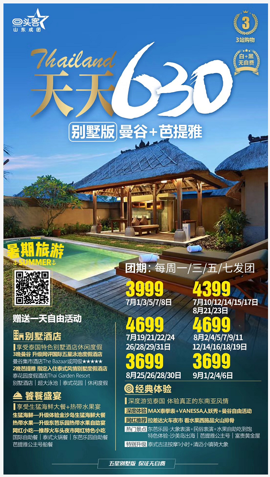 天天630 別墅版 曼谷+芭提雅5晚7天 2019-6-25 本文被閱讀 1802 次