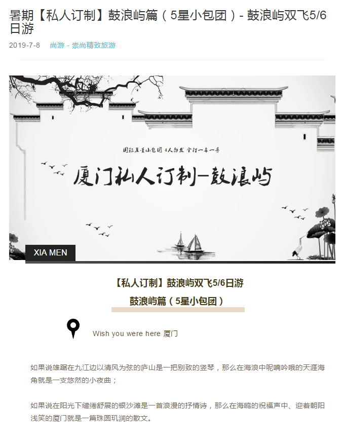 暑期【私人訂制】鼓浪嶼篇(5星小包團(tuán))- 鼓浪嶼雙飛5/6日游 2019-7-10 本文被閱讀 2161 次