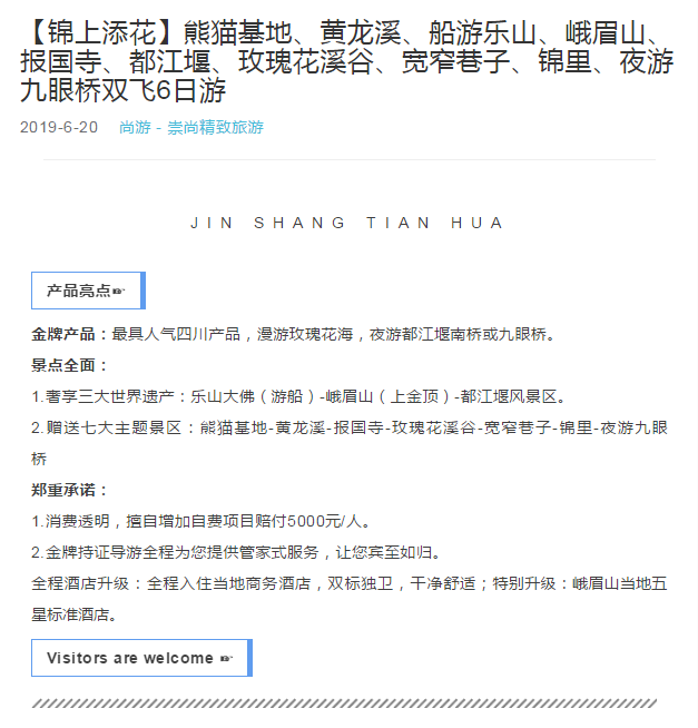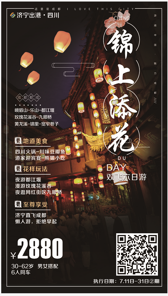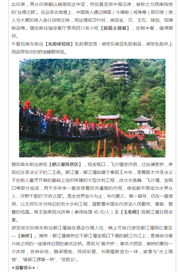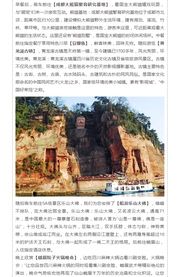 【錦上添花】熊貓基地、黃龍溪、船游樂山、峨眉山、報國寺、都江堰、玫瑰花溪谷、寬窄巷子、錦里、夜游九眼橋雙飛6日游 2019-7-13 本文被閱讀 2077 次