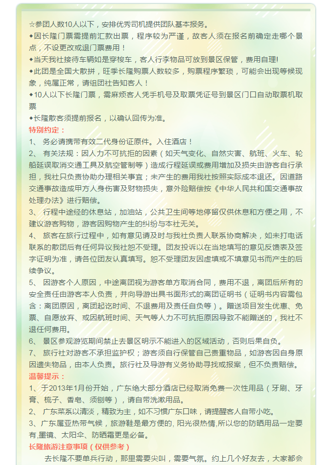 提示:報(bào)名選擇正規(guī)旅游合法資質(zhì)的旅行社,并簽訂全國統(tǒng)一電子旅游合同