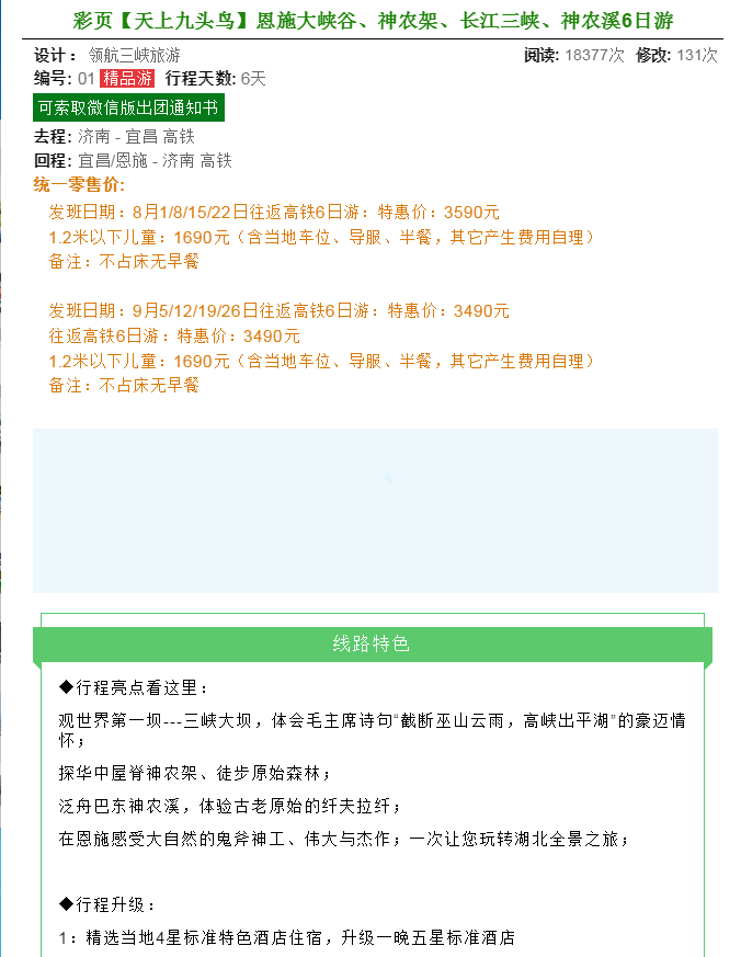 彩頁【天上九頭鳥】恩施大峽谷、神農(nóng)架、長江三峽、神農(nóng)溪6日游 2019-7-30 本文被閱讀 1900 次