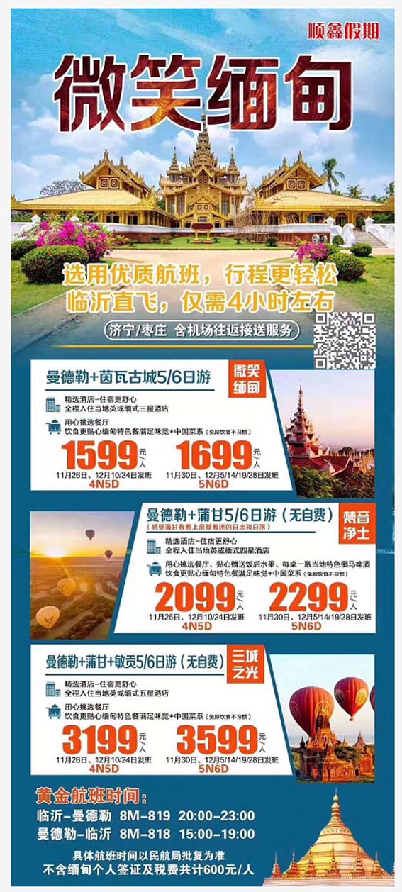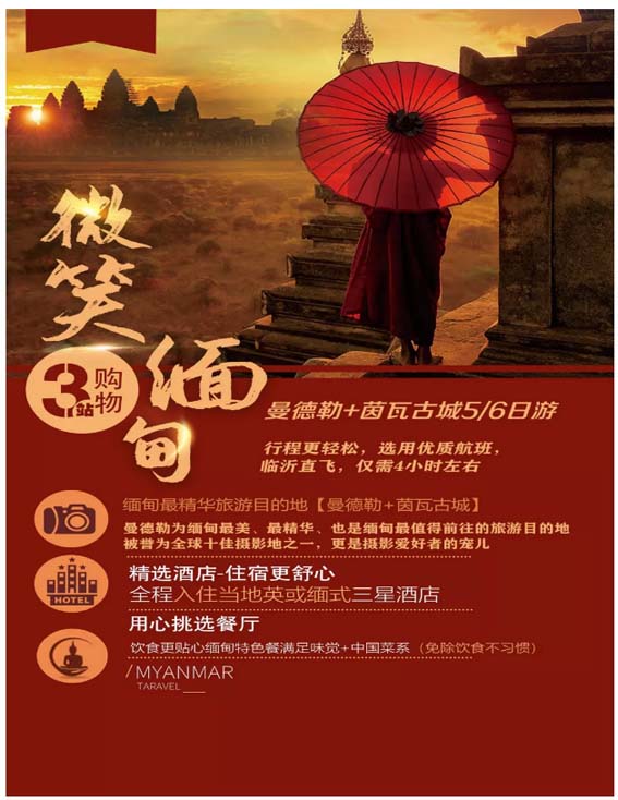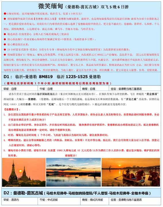 微笑緬甸(曼德勒-茵瓦古城)雙飛5晚6日游 2019-11-7 本文被閱讀 1922 次