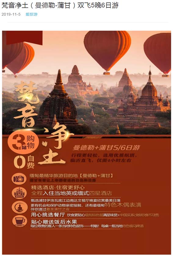 梵音凈土(曼德勒-蒲甘)雙飛5晚6日游 2019-11-7 本文被閱讀 1828 次