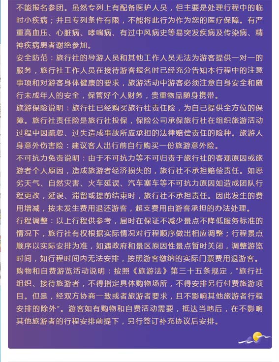 提示:報名選擇正規(guī)旅游合法資質(zhì)的旅行社,并簽訂全國統(tǒng)一電子旅游合同