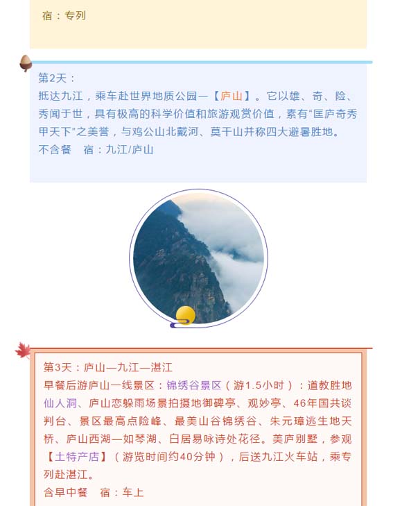 江西廬山、?凇⑷齺啞⑻煅暮=、興隆、廈門鼓浪嶼、南普陀寺專列14日游a線