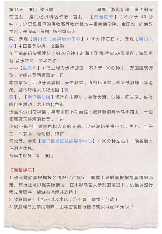 江西廬山、?凇⑷齺、天涯海角、興隆、廈門鼓浪嶼、南普陀寺專列14日游a線 2019-11-11 本文被閱讀 2133 次