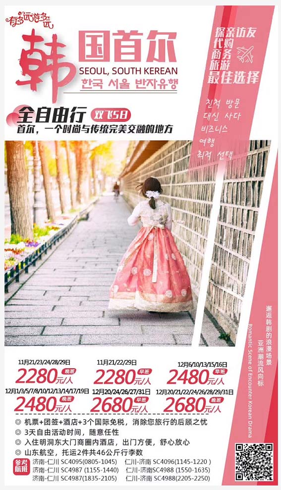 韓國(guó)首爾純自由雙飛五日游早班  2019-11-19 本文被閱讀 1914 次