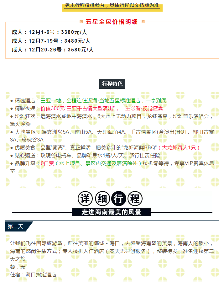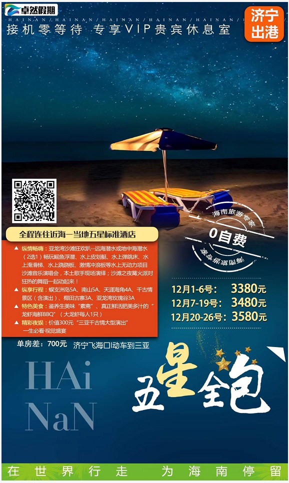 五星全包 - 濟(jì)寧飛海口動車到三亞