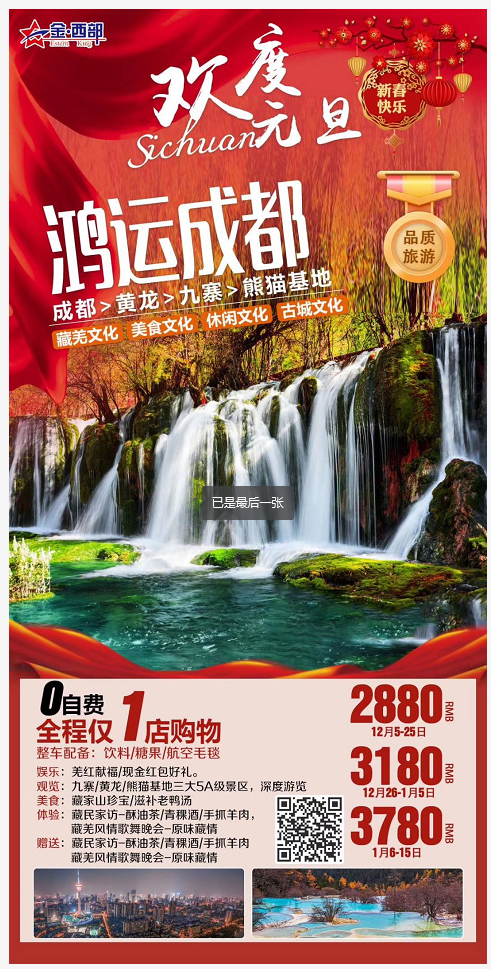 【新春】鴻運(yùn)成都雙飛6日游 2019-12-8 本文被閱讀 1924 次
