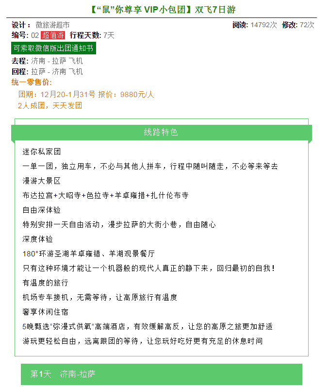 【“鼠”你尊享 VIP小包團(tuán)】雙飛7日游 2019-12-8 本文被閱讀 2094 次