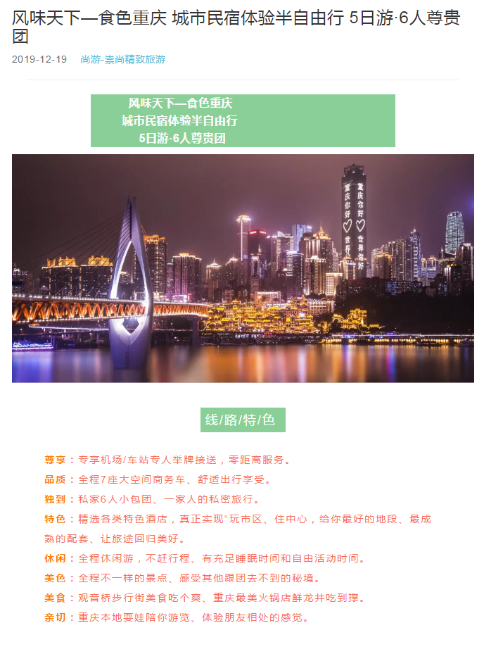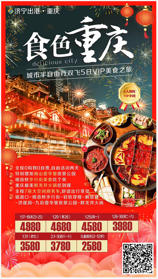 春節(jié)版--風(fēng)味天下—食色重慶 城市民宿體驗(yàn)半自由行 5日游·6人尊貴團(tuán)  2019-12-23 本文被閱讀 1918 次