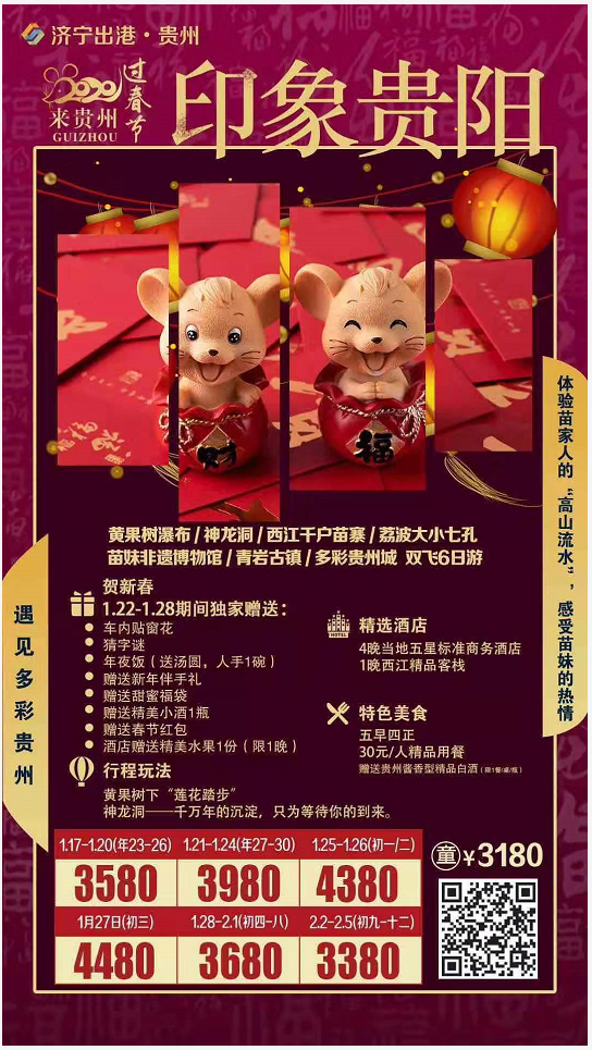 春節(jié)版---【印象貴陽】 黃果樹瀑布•荔波大小七孔•西江千戶苗寨•青巖古鎮(zhèn)•神龍洞雙飛六日游 2019-12-24 本文被閱讀 1773 次