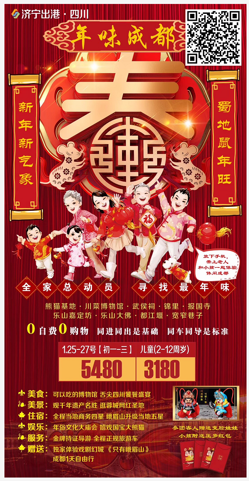 春節(jié)版--【年味成都】雙飛6日游  2020-1-3 本文被閱讀 1508 次