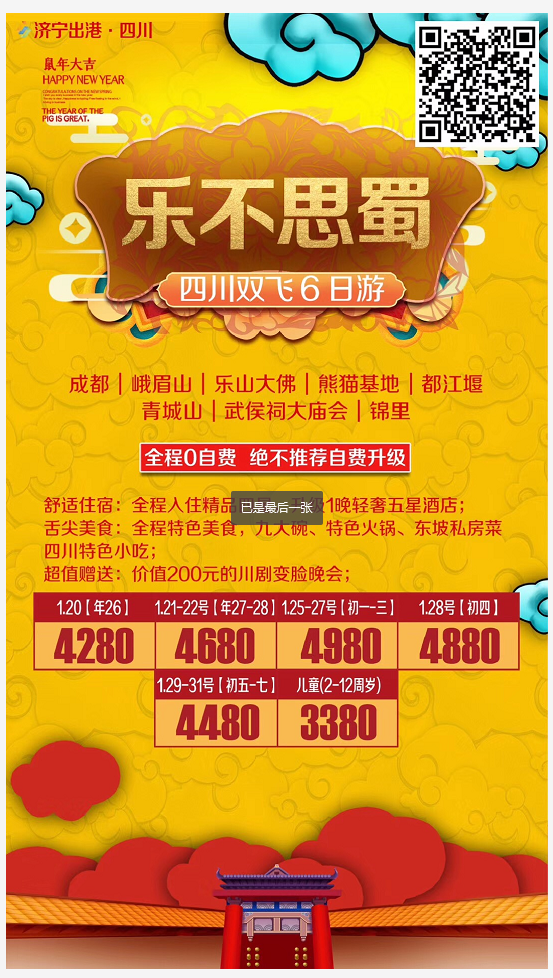 春節(jié)版--樂不思蜀春節(jié)版6日游 2020-1-3 本文被閱讀 1618 次