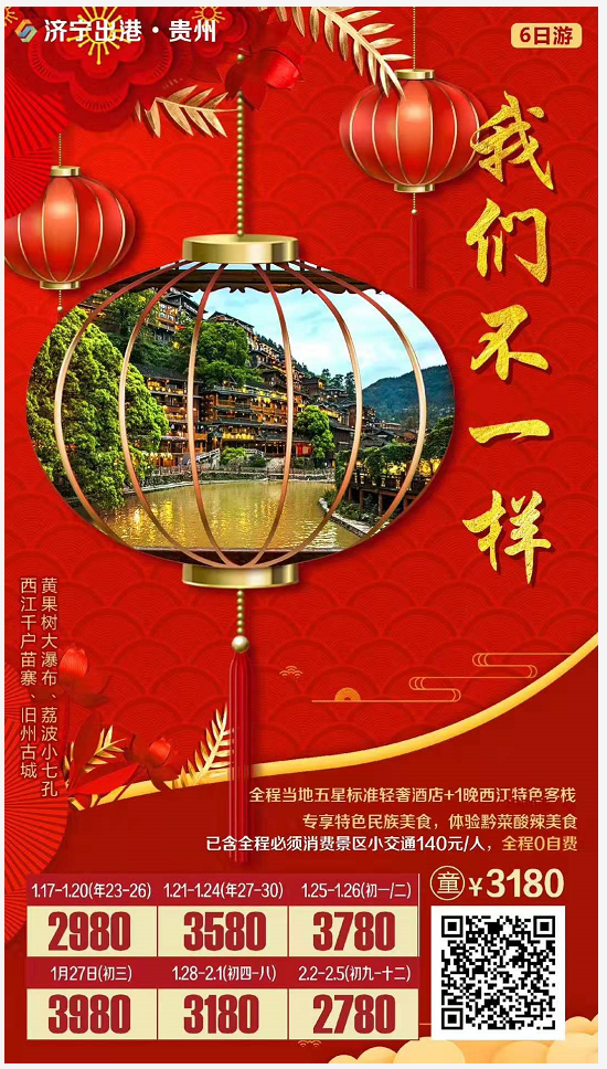 春節(jié)版---【我們不一樣】西江千戶苗寨、荔波小七孔、黃果樹大瀑布、 陡坡塘、天星橋、舊州古城雙飛6天特色游