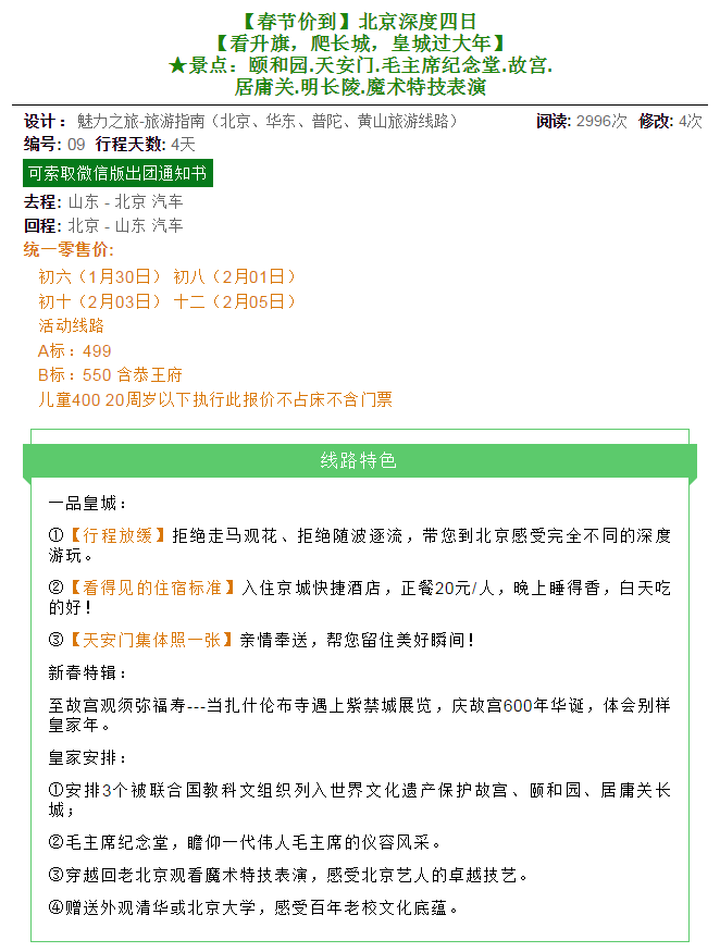 【春節(jié)價到】北京深度四日