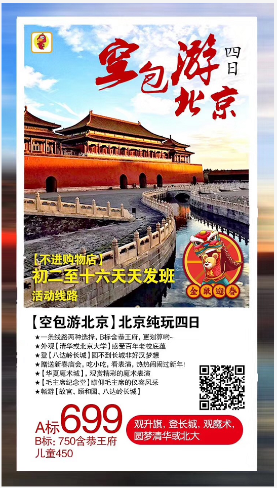 春節(jié)【空包游北京】純玩四日