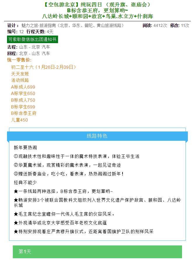 春節(jié)【空包游北京】純玩四日 2020-1-17 本文被閱讀 1814 次