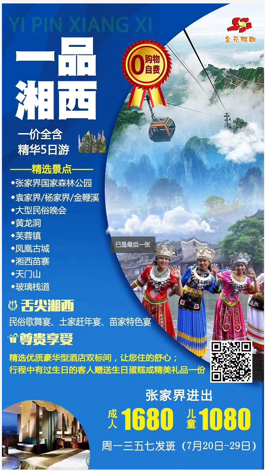 一品湘西張家界雙飛5日 2020-7-20 本文被閱讀 1927 次