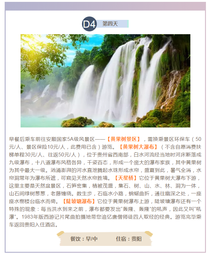 【黔美貴州】西江千戶苗寨、黃果樹瀑布、陡坡塘、天星橋、小七孔景區(qū)、青巖古鎮(zhèn)雙飛6天純玩尊貴游