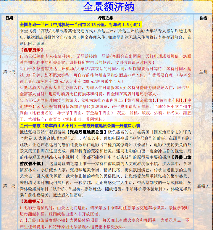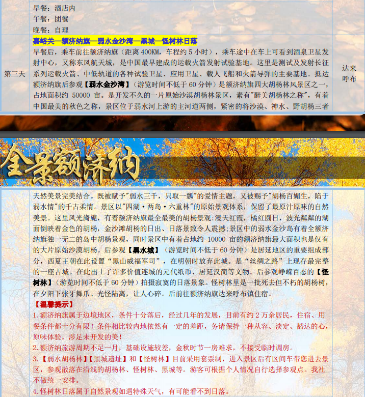 全景額濟納雙飛6晚7天