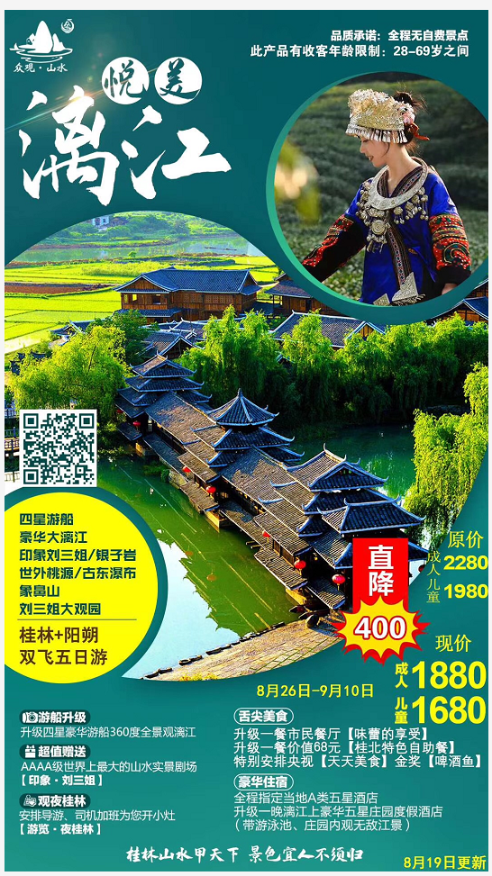 悅美•漓江桂林+陽(yáng)朔雙飛五日游 2020-8-27 本文被閱讀 1691 次