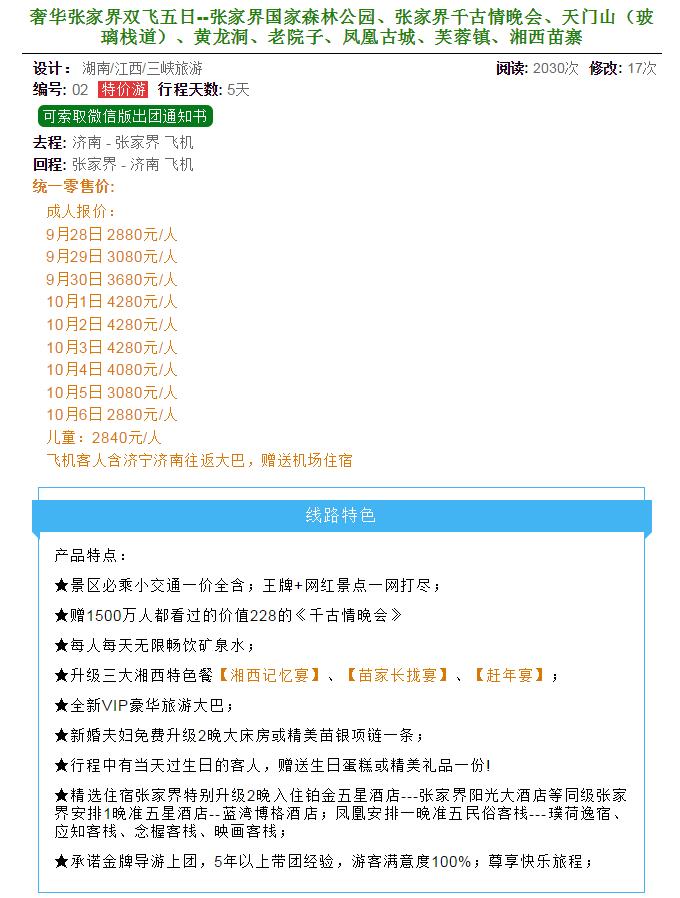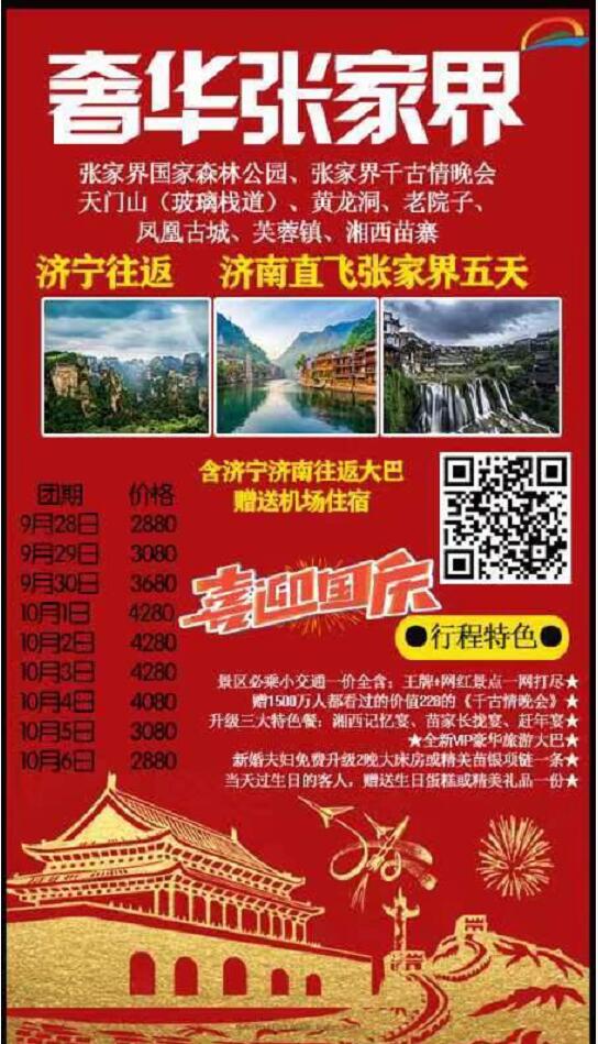 國慶節(jié) 奢華張家界雙飛五日 2020-9-16 本文被閱讀 1663 次