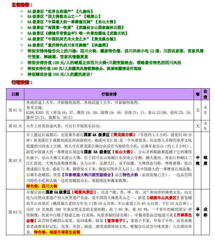 成都 九寨溝 都江堰 峨眉山 樂山 黃龍溪古鎮(zhèn) 重慶 武隆天坑 仙女山 空調包列 12 日游